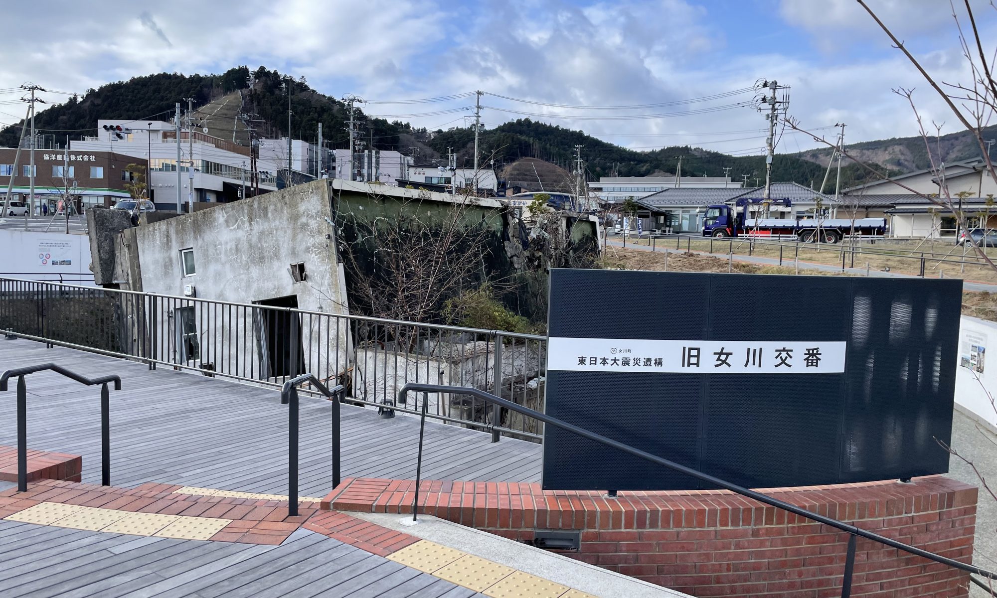 東日本大震災の記憶と教訓、そして絶望から立ち上がった人々の復興の歩みを後世へと引き継ぐとともに、未来に生きる人々が今回の震災の被災者と同じ悲しみや苦しみを味わうことの無いように願い、町民の意向、学術的な価値、新しいまちづくりの中での位置づけ、維持管理上の問題などを総合的に判断し、「旧女川交番」を震災遺構 として現位置に保存しています。
